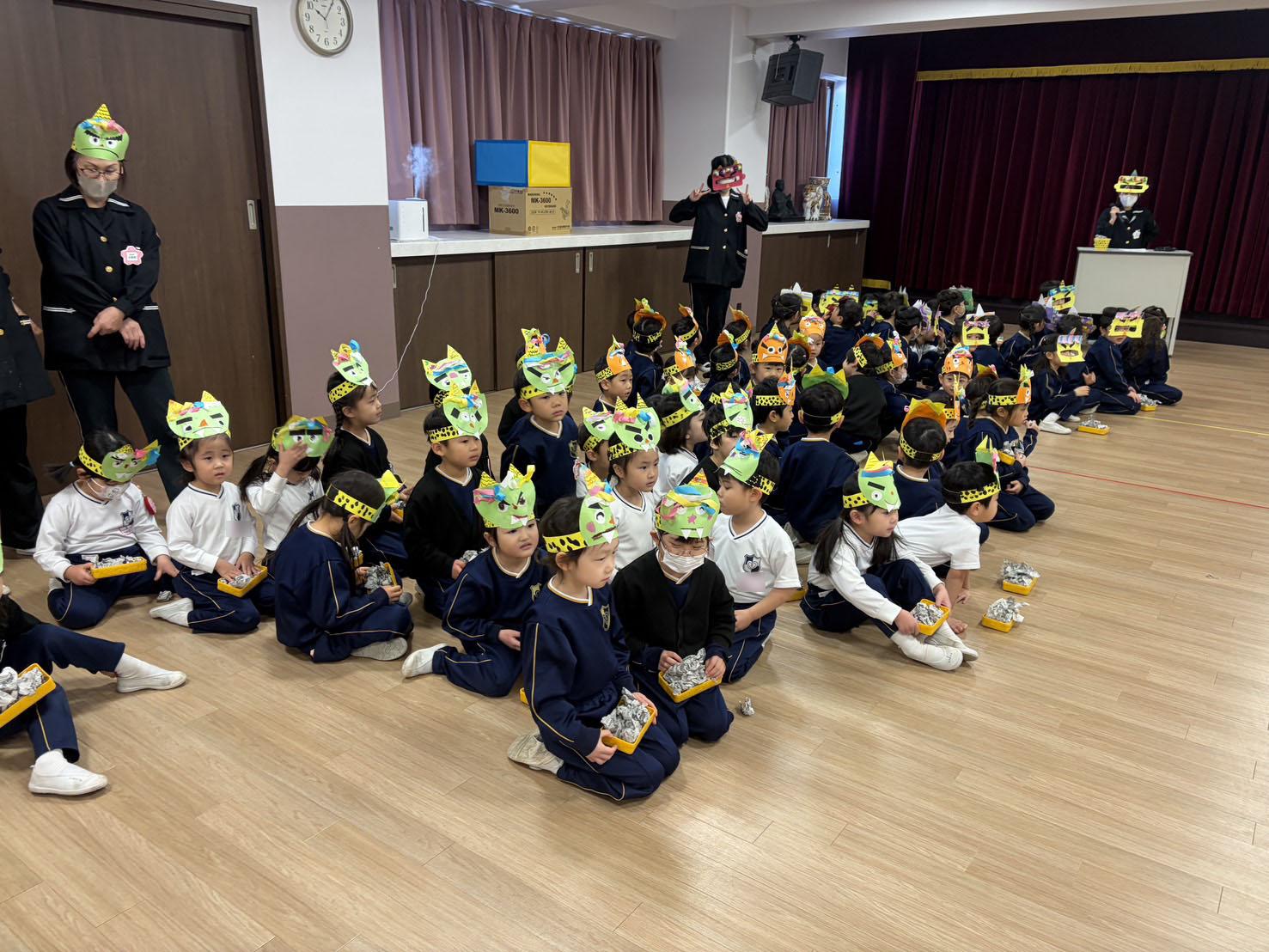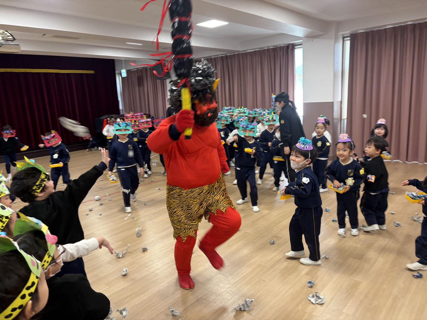 怖がりながらも豆を巻く子どもや、率先して鬼の側に近寄る子どももいて、それぞれ楽しんでいました。