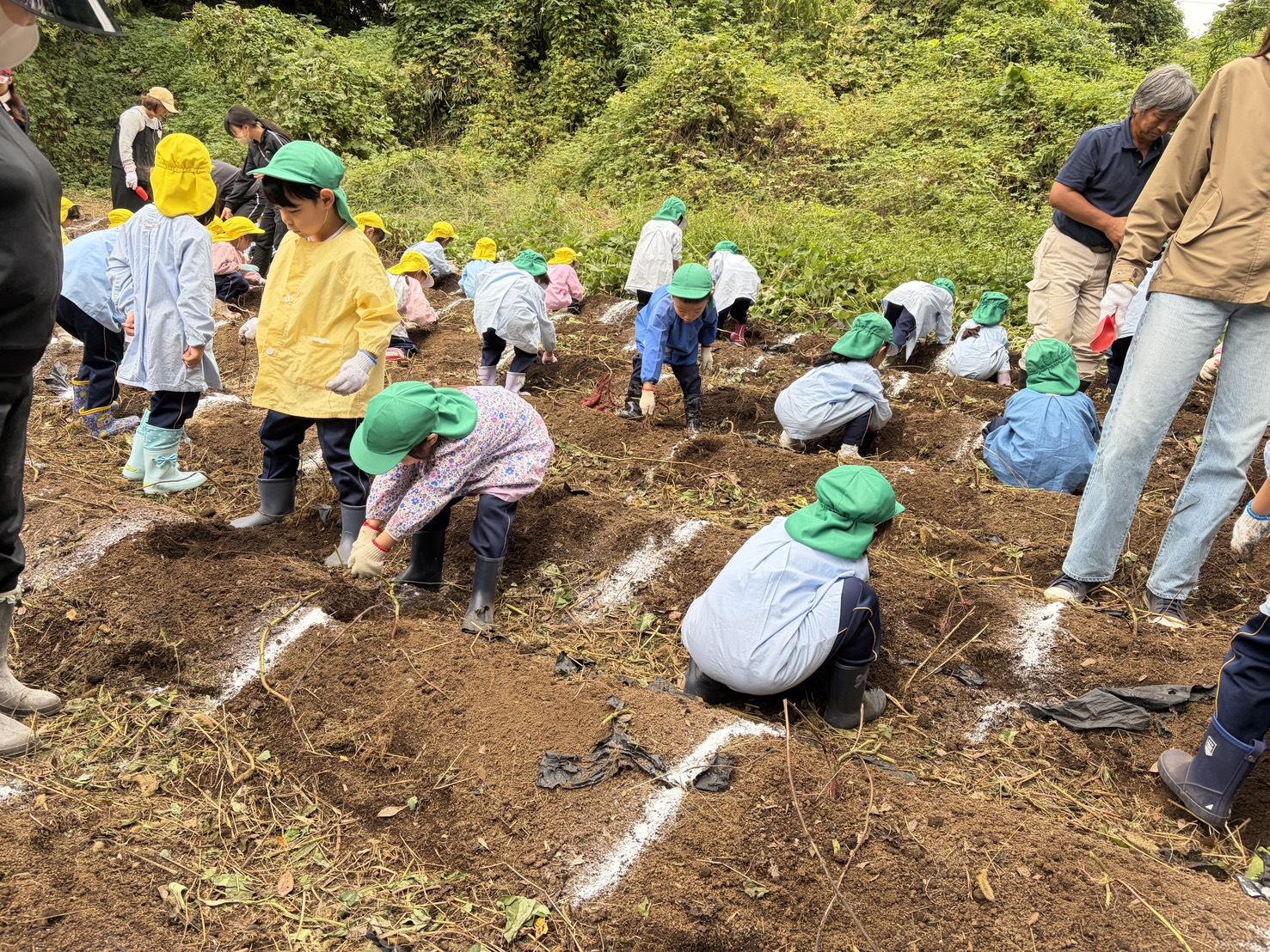 収穫の時期を終えた畑に花組(年中クラス)がお花を植えました。
