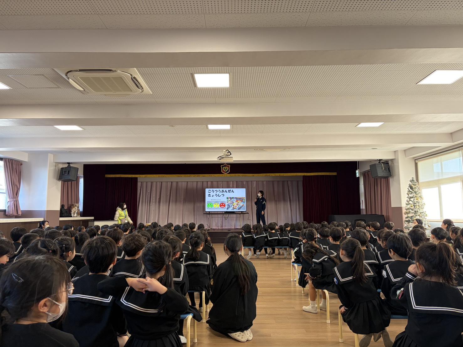 警察官、区役所の方を招いて安全交通教室を行いました。